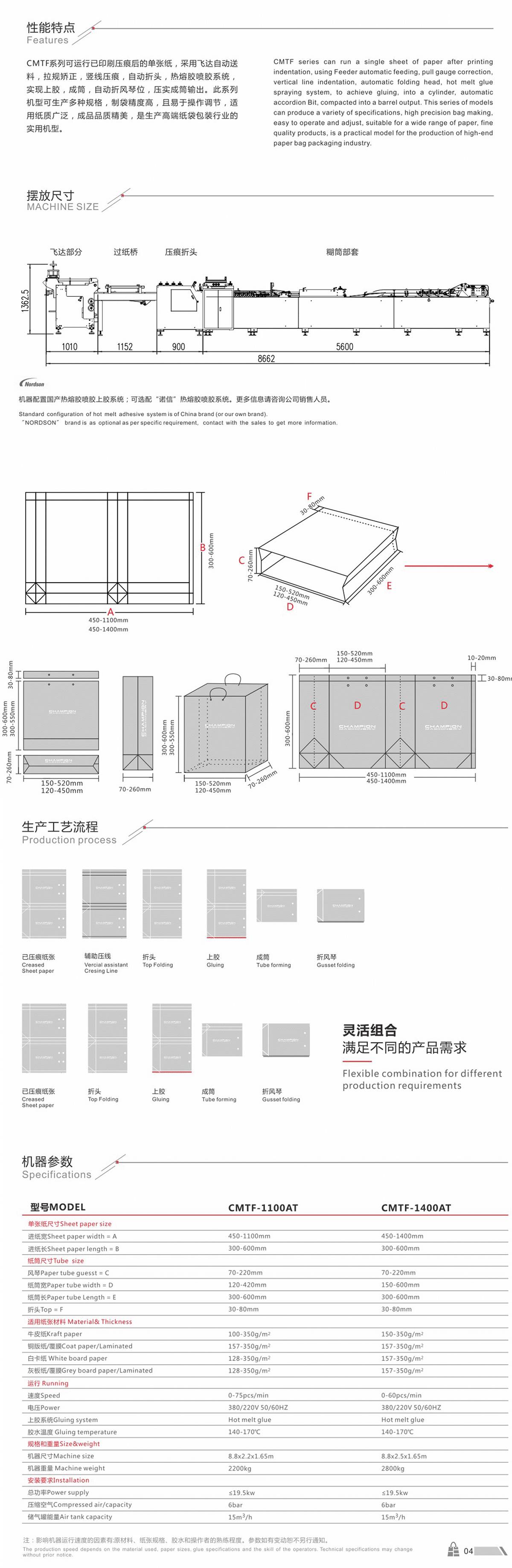 纸袋内折式折头糊筒机 CMTF-1100/1400AT